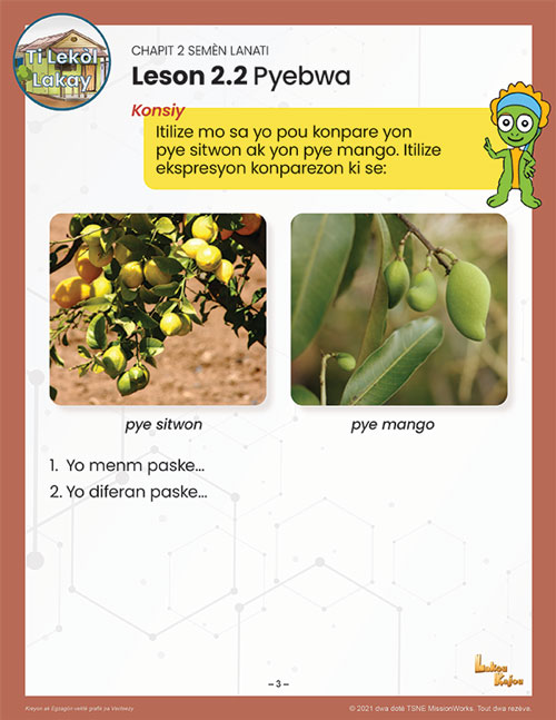 Ti Lekòl Lakay is designed to be flexibly used for kids in preschool to 4th grade. It can be both listened to in a home environment individually, with siblings, or as a family, or in a small or large group in a community setting. Each lesson is between 4-10 minutes of audio content and comes with accompanying activities. Each of the 10 units (bees, living environment, geography, plants, water, exercise, transportation, tools, historical places, and measurement) has 5 individual lessons for a total of 50 lessons. All of Ti Lekòl Lakay content is produced in Kreyòl and free to all users.
